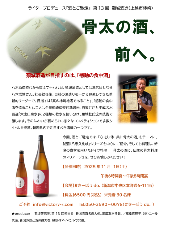 第13回目となるライタープロデュース『酒とご馳走』は頚城酒造さん♪