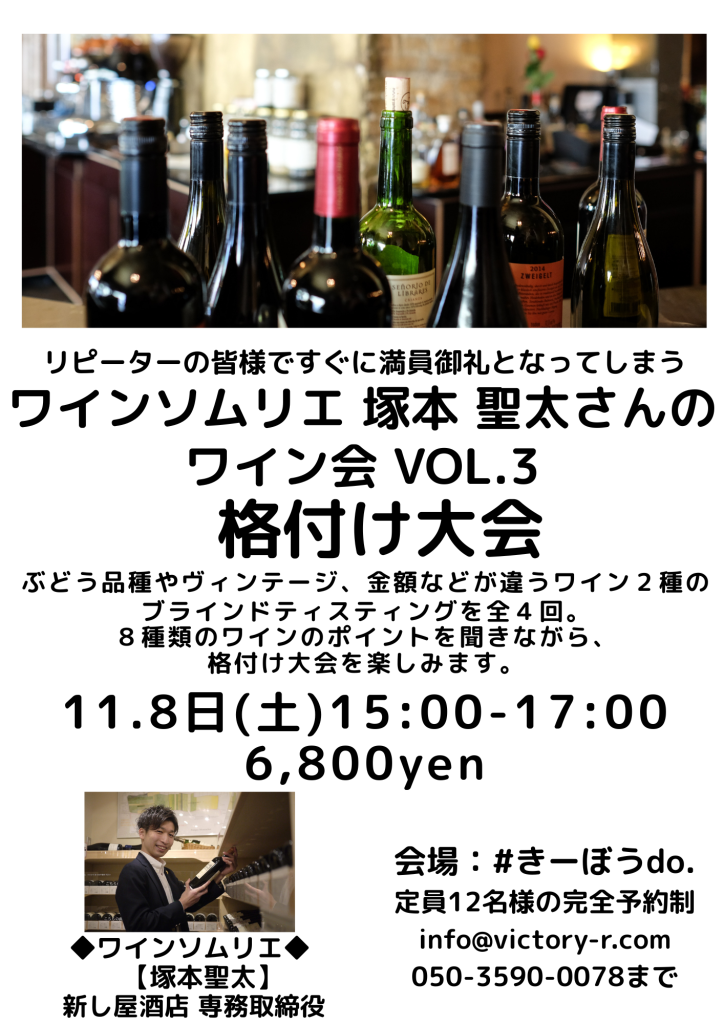 リピーターの皆様ですぐに満員御礼となってしまう大好評のワインソムリエ 塚本聖太さんのワインの会です。