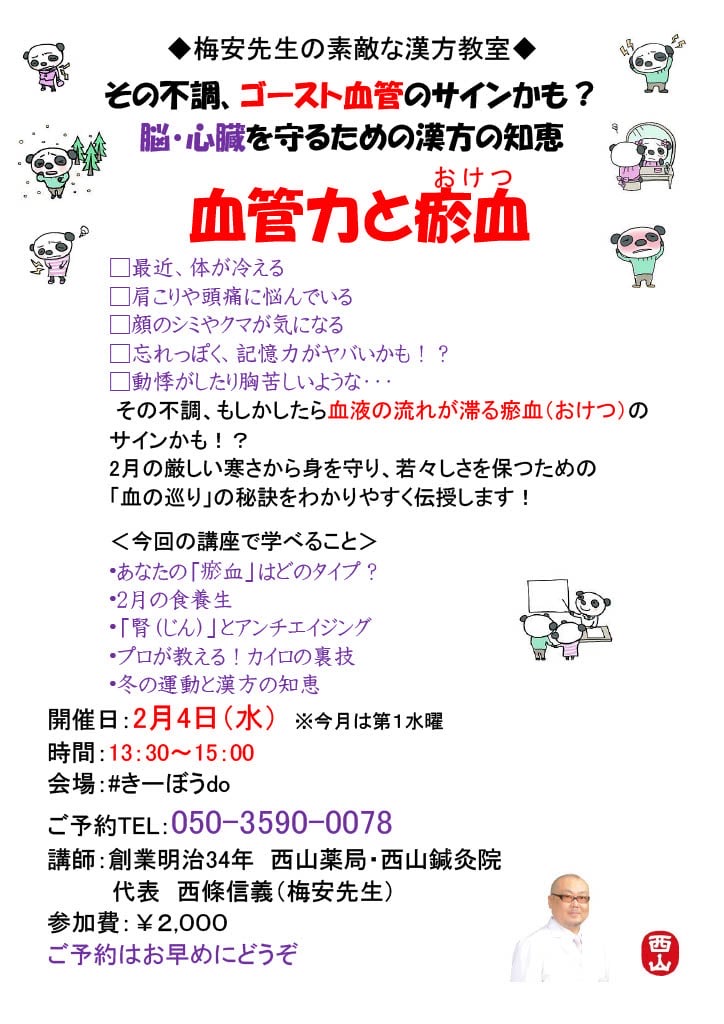 きーぼうdo.Libraly 2.4(Wed)血管力と瘀血(おけつ) 2026.01.15 Post Share Line 立川らく萬 定例落語会まんかい 2026 前の記事 2.27(Fri)スマホ相談会&スマホガラスコーティング 次の記事
