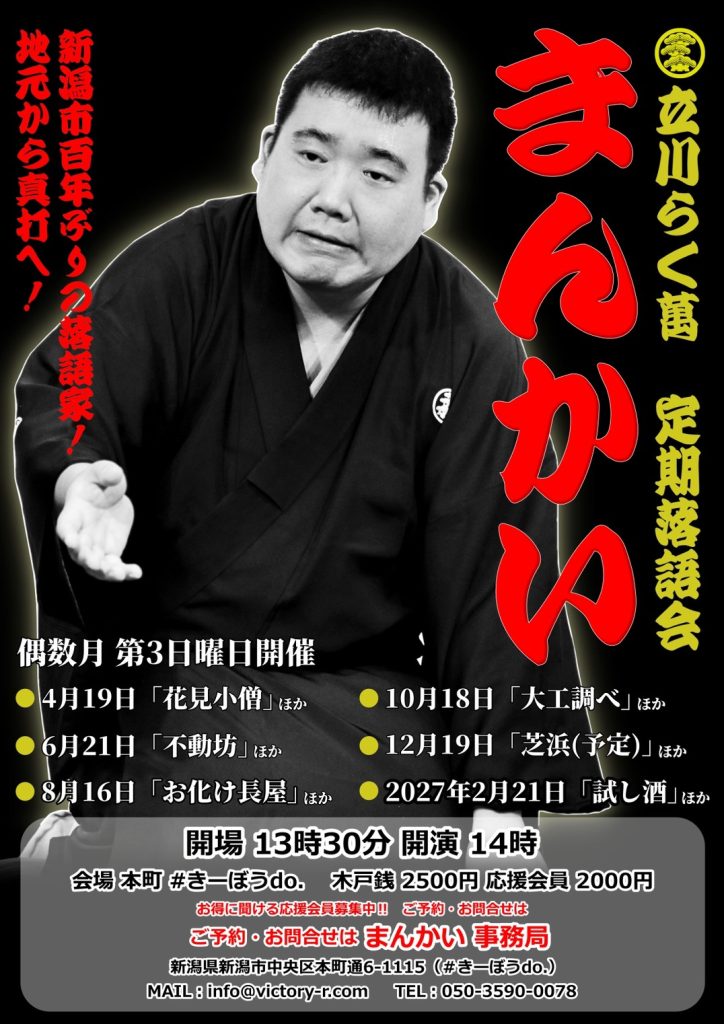 新潟市出身は100年ぶりとなる真打の落語家さん誕生を一緒に応援しませんか。